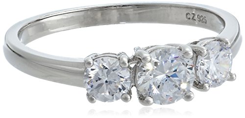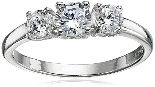 18k Yellow Gold-Plated Sterling Silver Round Cut Three-Stone Cubic Zirconia Ring (0.96 cttw), Size 7