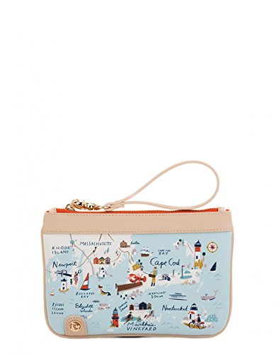 -. Feature : Textured coated vinyl exterior with faux leather accents / Zip closure / Canvas interior / Width: 9" ~Height: 6" ~Depth: .5"
