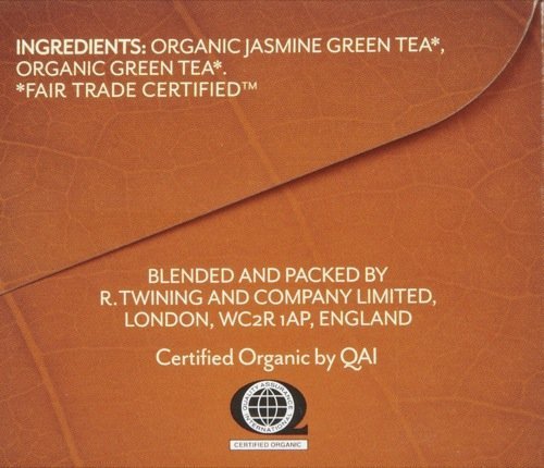 -. Feature : 20 tea bags of Green with Jasmine Organic / Organic / Fair Trade Certified / Pure green tea perfectly balanced with the unique floral scent of jasmine. / Hand-selected from the world's finest tea gardens. Made without any artificial ingredients, Twinings Organic and Fair Trade Certified™ teas provide a natural and wholesome tea experience.