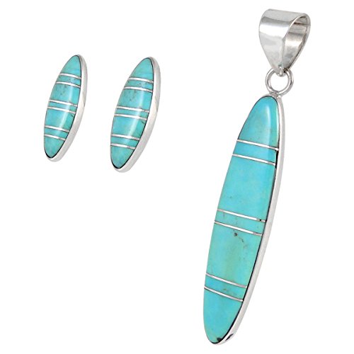 -. Title : 925 Sterling Silver & Genuine Turquoise Gemstones Matching Pendant & Earrings Set with 20" Necklace