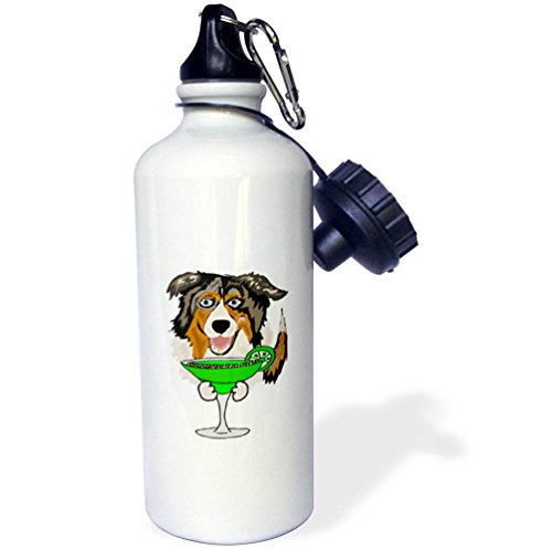 -. Title : 3dRose All Smiles Art Drinking - Funny Cute Australian Shepherd Dog Drinking Margarita - 21 oz Sports Water Bottle (wb_256462_1)
