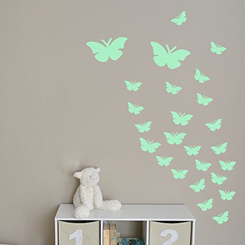 Amaonm 12 PCS Removable Glow In The Dark Green Butterfly Wall Decals DIY Home Art Decor Decorations Butterflies Wall Stickers Murals for Kids room Girls Bedroom Nursery Room Classroom Living room
