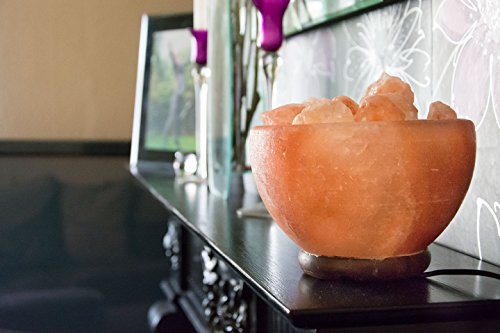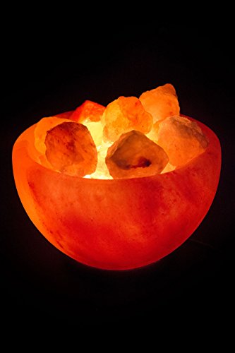 Manhattan Serenity Firebowl Himalayan Salt Lamp. 6ft UL-Certified dimmer switch, 15watt bulb. Carved salt bowl with natural salt chunks on a neem wooden base.