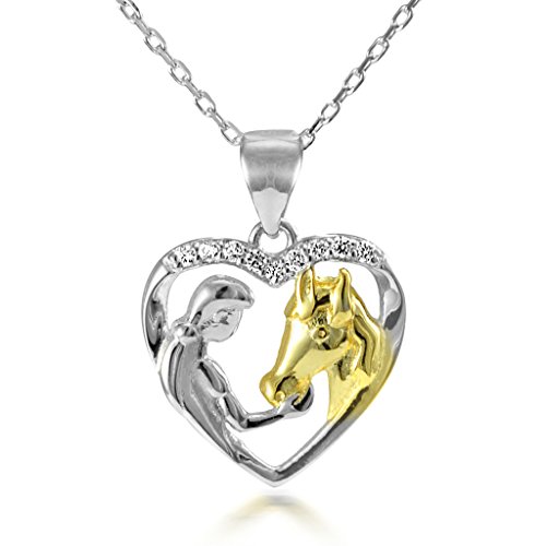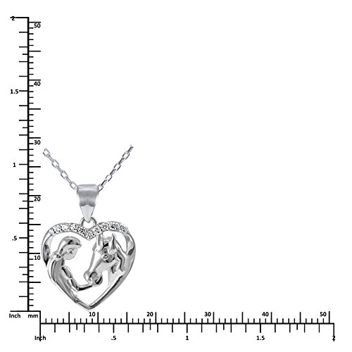 -. Title : Sterling Silver White Topaz Girl Feeding Her Horse Open Heart Pendant Necklace, 18"