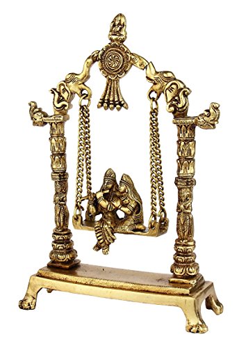 StatueStudio Brass hindu god deity lord krishna and goddess radha on swing idol figure 12"