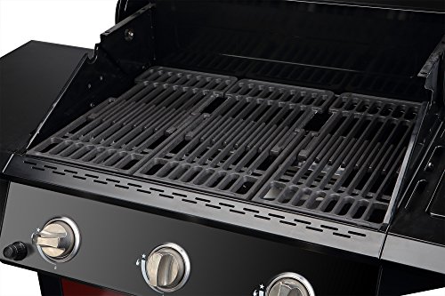 - Non stick cast iron cooking surface helps retain heat and create great sear marks.