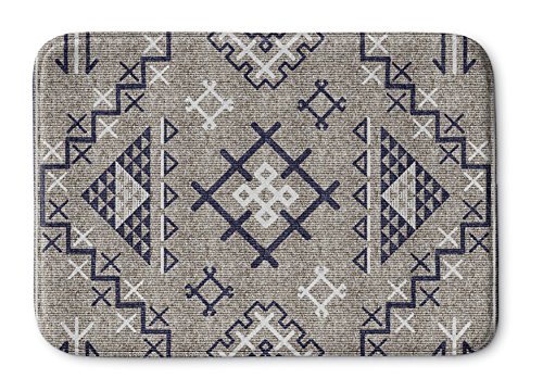 KAVKA Designs Aztec Dark Blue Memory-Foam Bath Mat, (Beige/Blue) - NAVAJO Collection, Size: 24x36x0.75 - (MGTAVC2031SUML)