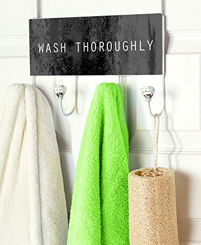 Stupell Home Décor Wash Thoroughly Over The Door Hanger, 12 x 10.5 x 2, Proudly Made in USA