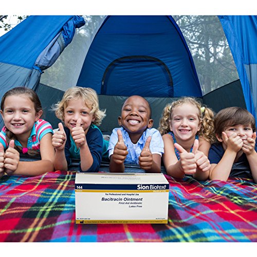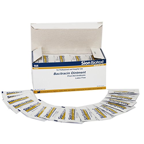 Bacitracin Ointment Antibiotic by Sion Medical. Kitchen, Travel, Home and Car First Aid Kit Antiseptic and Antibacterial Antibiotic Helps to prevent infection and pain relief in minor cuts, scrapes, burns. Each of the products is manufactured to strict standards ensuring the highest quality and consistency. Antibiotics ointments that work by stopping the growth of bacteria. 144 bulk individual packages in 1 box. Used for Topical Treatment of a Variety of Localized Skin Infections, as Well as for the Prevention of Wound Infections, Aftercare Antibacterial Antibiotic on Tattoos and Circumcision.Feature