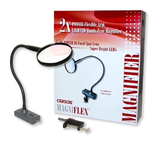 LED Lighted, fully-adjustable, flexible neck magnifier that attaches to your tabletop for convenient hands free use