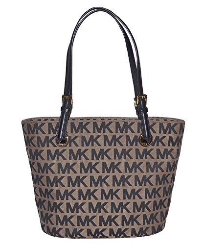 -. Title : Michael Kors Jet Set Item Medium Tote MK Signature Jaquard Beige/Black