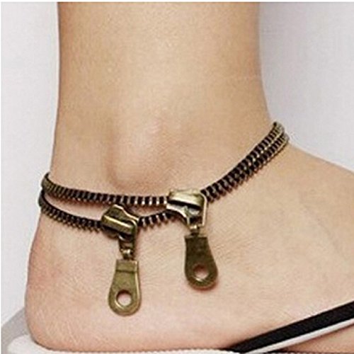 -. Title : Sandistore Vintage Punk Metal Jewelry Unique Zipper Design Anklet Bracelet Accessories