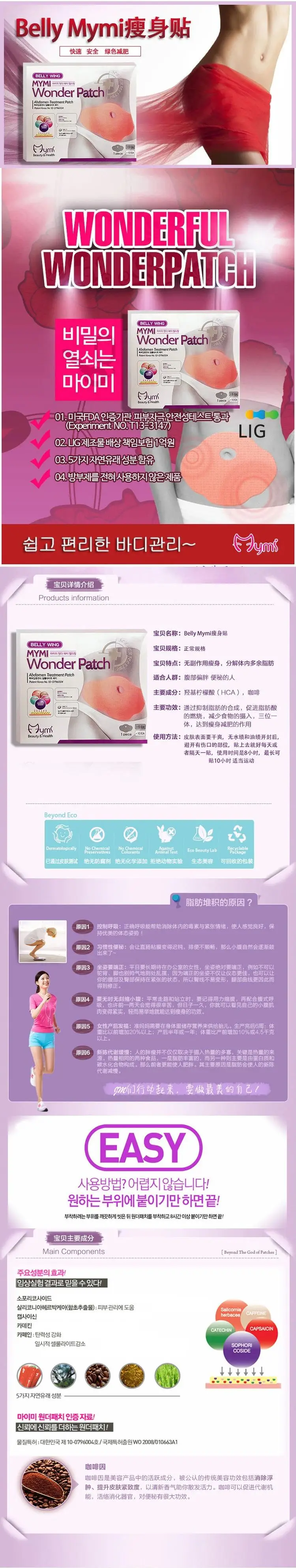 10件MYMI奇迹减肥补丁腹部腹部减肥脂肪燃烧苗条补丁