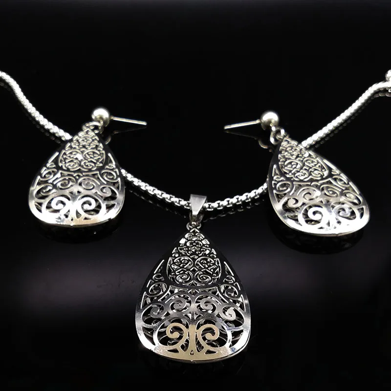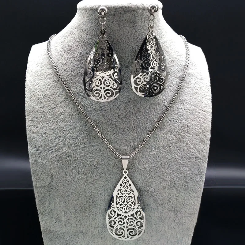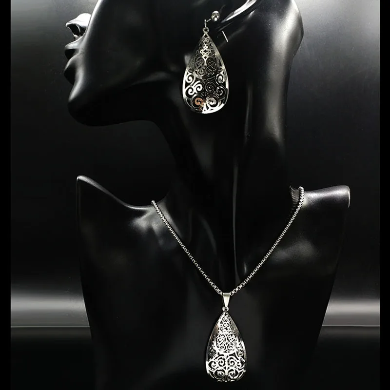 set:Water Drop Earrings Necklace Jewelry Sets