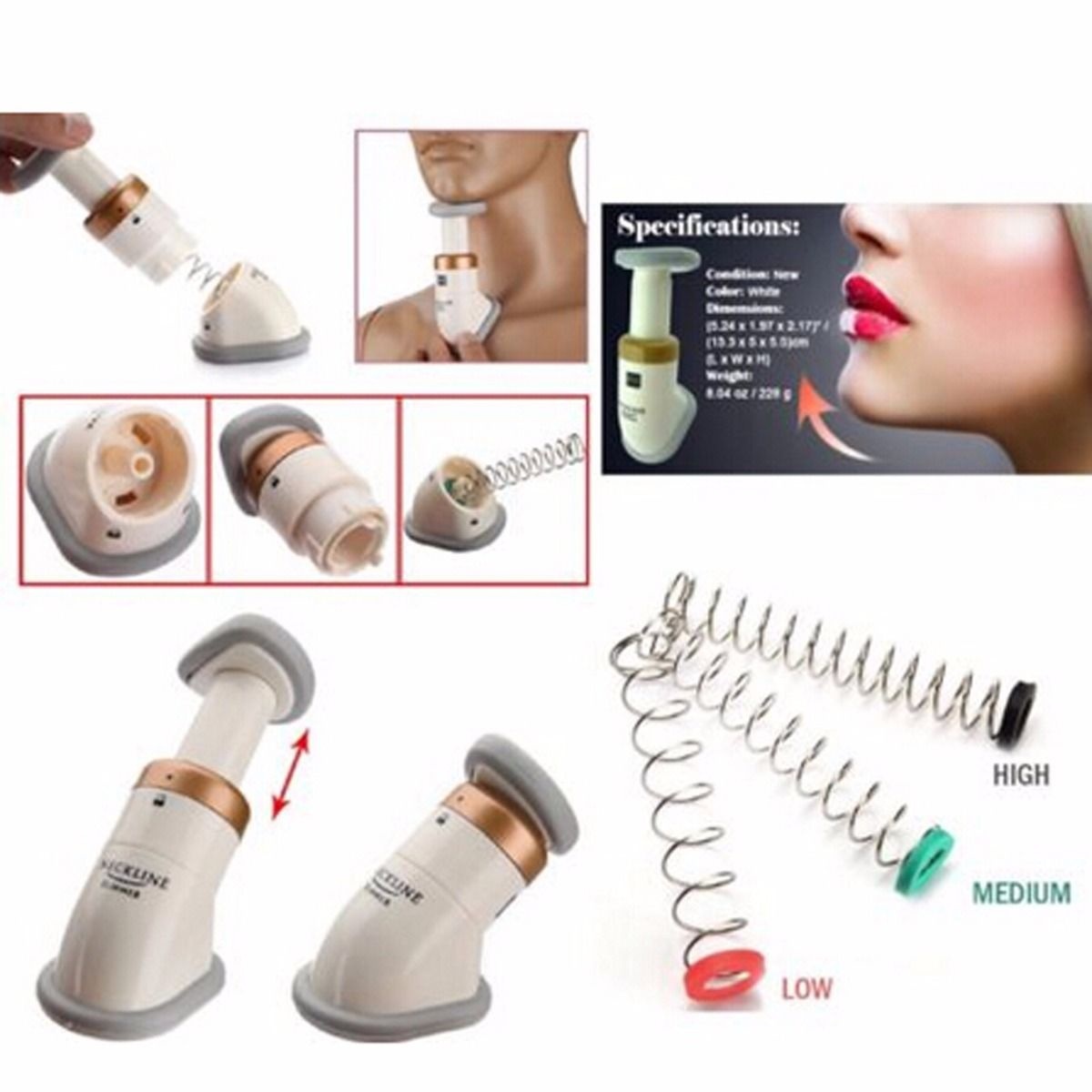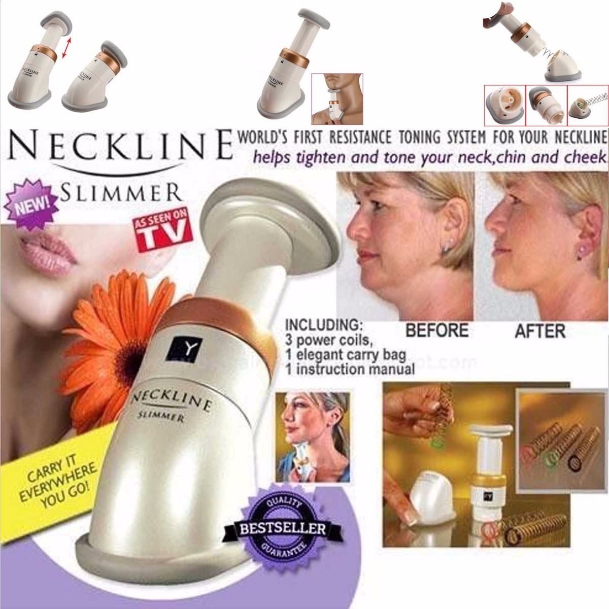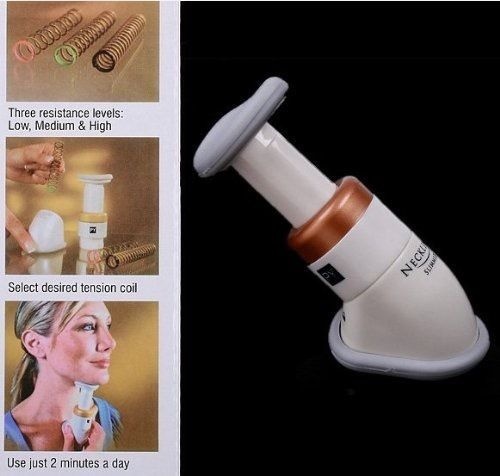 With the Neckline slimmer get a firmer, younger-looking neckline in just 2 weeks. Developed by world-renowned physiotherapist, Paul Younane, the unique Neckline Slimmer gets rid of double chins and unsightly neck folds in a matter of days! Working by means of a resistance spring action , it tones and firms neck muscles, leaving your neckline looking tighter and more youthful. It includes three springs - for beginner, medium and advanced stages which will ease you into the neck-slimming process. In as little as 14 days your neckline will be slimmer, firmer and looking years younger. No pain, no expensive surgery; and ultimately no more double-chin or neck folds!