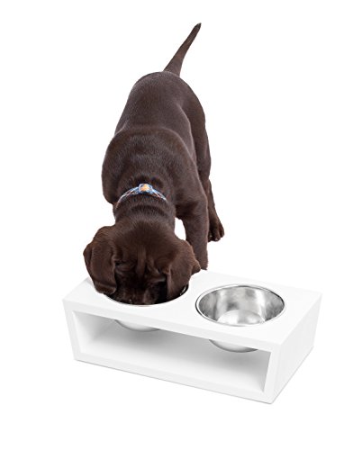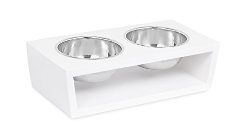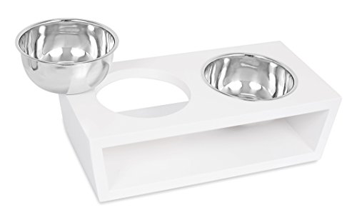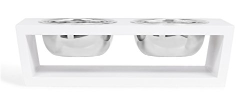 Studio : Internet's Best Publisher : Internet's Best Binding : Misc. Product Description Internet's Best Modern Elevated Pet Feeder is a perfect dog, puppy or cat feeder providing a healthier eating experience. The pet bowls rest nicely within a decorative raised pet feeder allowing your cat or dog to eat at a better posture improving your pet's digestive health. Each elevated feeder is crafted from a durable wood stained with a sleek and simple white finish. The feeders are designed in a simplistic modern style providing a soft touch to any room. The elevated dog bowl is equipped with 2 separate stainless steel dog bowls measuring at 1.25 pints each. Bowls may be removed simply and are dishwasher safe for ease of cleaning. The pet feeders are shipped fully assembled for immediate use upon arrival. Treat your pet like royalty with Internet's Best Modern Elevated Pet Feeder 0