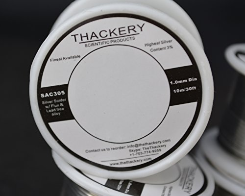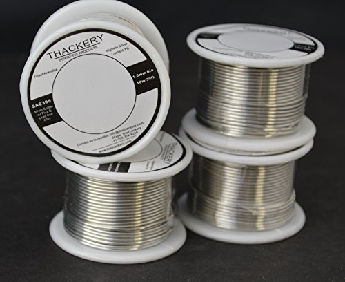 Thackery Silver Flux Core Solder Wire - SAC305 - available in 1mm and .8mm thickness - sold by the foot/meter (10m/30ft x 1mm Thickness)