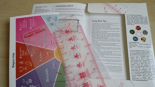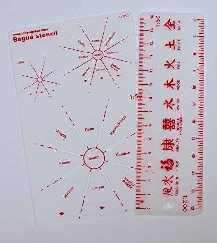 - IS HELPFUL WHEN USING FENG SHUI BOOKS - Kit Includes a detailed bagua map, bagua stencil and ruler. The bagua stencil and the ruler are the tools you need to determine the various zones (wealth, health, relationships etc.) on your floor plan. The bagua map is like a summary of feng shui books giving all information needed about every area including cures and activators for wealth and for love.