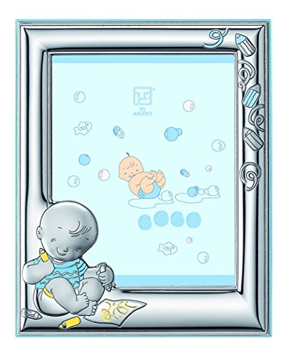 - The front is hand made from 0.925 sterling silver featuring a baby boy; The back is made from wood in blue color; The frame comes with a cute coloring book as a set