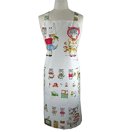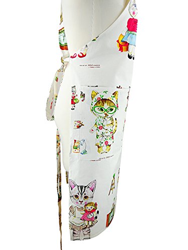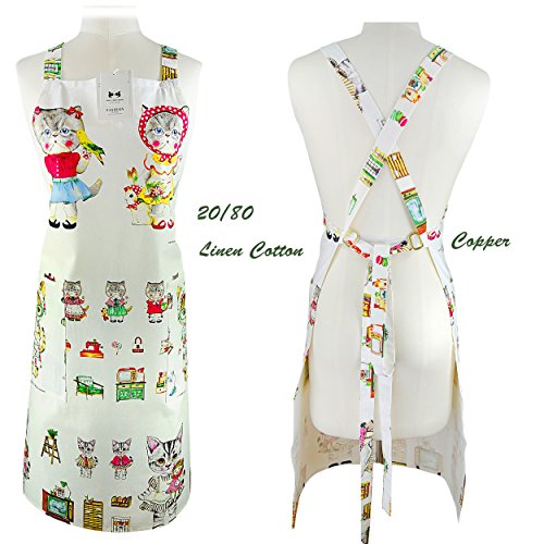 Linen Cotton Apron,Aiden Brothers' Durable Extra Long Cross Back Ties 2 Large Pockets Linen Apron for Cooking, Baking, Crafting, Gardening, BBQ 26"x35" (Lovely Cat Sisters), Adjustable up to XXL