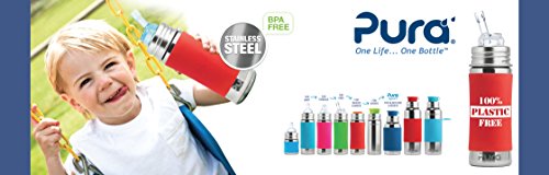 -. Feature : 100% Plastic free bottle compatible with nipples, silicone sip spout, straw, and sport top from Pura. Also Compatible with nipples and spouts from Pura and other brands. / Includes 9oz insulated bottle with XL Sipper Spout plus a set of 2 extra XL Sipper Spouts / Crafted from safe, anti-bacterial, #304 stainless steel and medical grade silicone components which contain no plastic, BPA, EA, PVC or other toxins that could leach into beverage / Internal volume marks for easy measuring. Keeps liquids warm or cool for up to 6 hours. / Dishwasher safe and shatterproof. Wide bottle opening makes cleaning with a bottle brush simple.