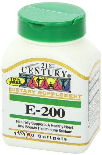 -. Binding : Health and Beauty -. Brand : 21st Century -. Feature : Naturally supports a healthy heart and boosts the immune system. / Unconditionally guaranteed for purity, freshness and label potency. / It an essential antioxidant nutrient that helps maintain red blood cells and muscle tissue such as cardiac and skeletal muscles. -. IsAdultProduct : 0 -. Label : 21st Century -. Manufacturer : 21st Century -. NumberOfItems : 2 -. PackageQuantity : 2 -. ProductGroup : Health and Beauty -. ProductTypeName : HEALTH_PERSONAL_CARE -. PublicationDate : 2011-01-21 -. Publisher : 21st Century -. Studio : 21st Century -. Title : 21st Century E 200 I.U. (Dl-Alpha) Softgels, 110 Count (Pack of 2)
