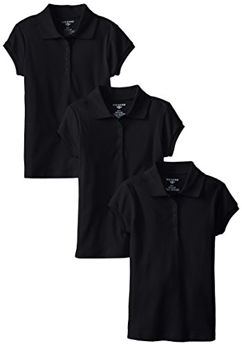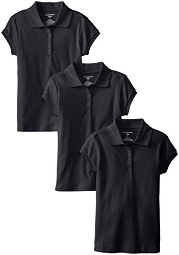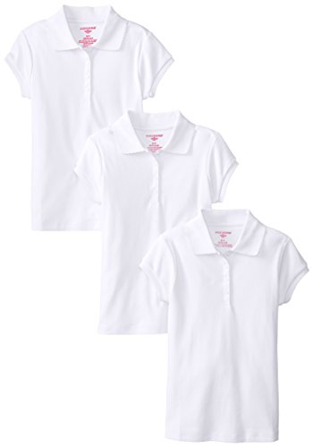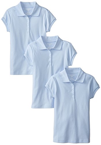 Dockers Little Girls' Uniform 3 Pack Short Sleeve Polo Bundle, Light Blue, Large