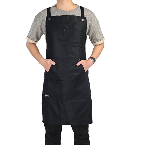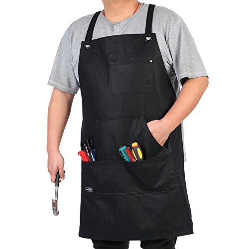 - Comfort and Stylish Rugged Work Apron: Cross-back straps go over the shoulders rather than around the neck to better distribute weight to prevent neck pain. You will feel comfort to wear this work apron!
