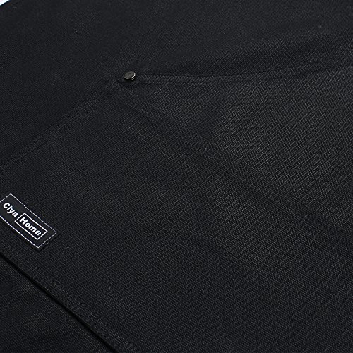 Waxed Canvas Apron, Clya Home Heavy Duty Waxed Work Apron Utility Apron with Pockets, Adjustable up to XXL Fits Men and Women (Black)