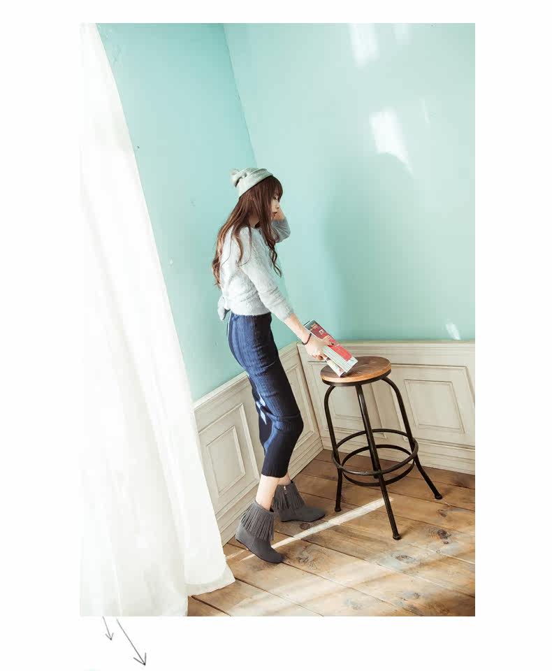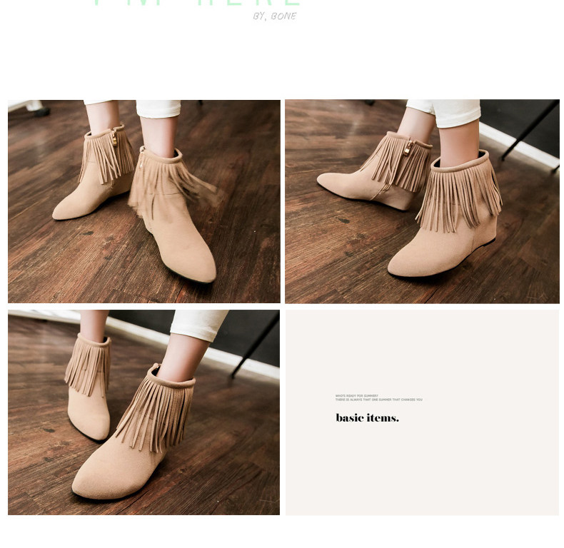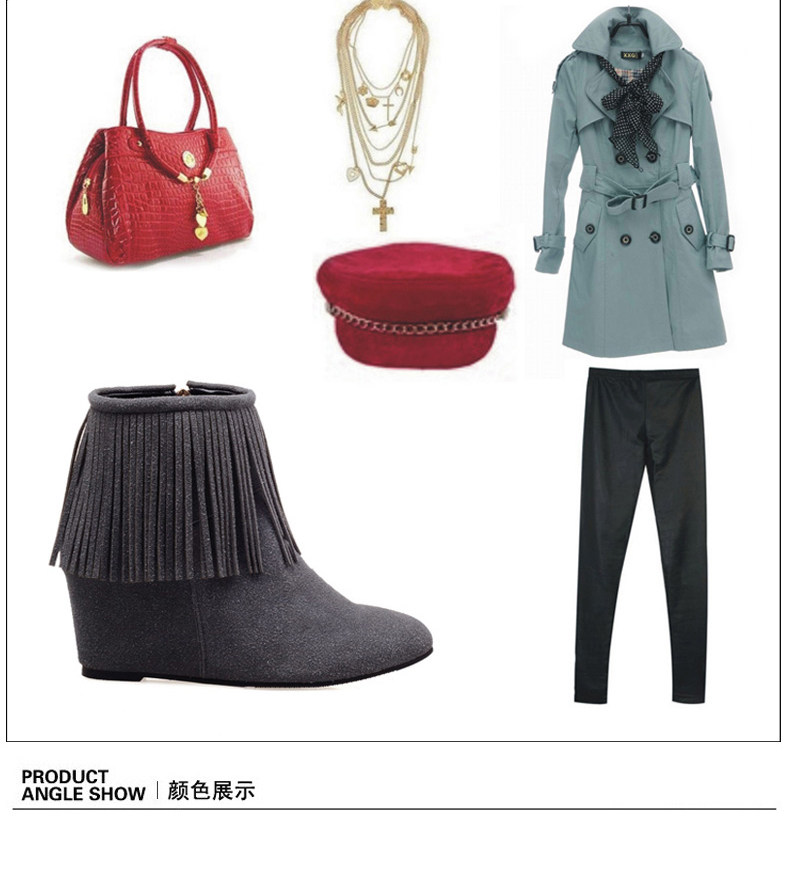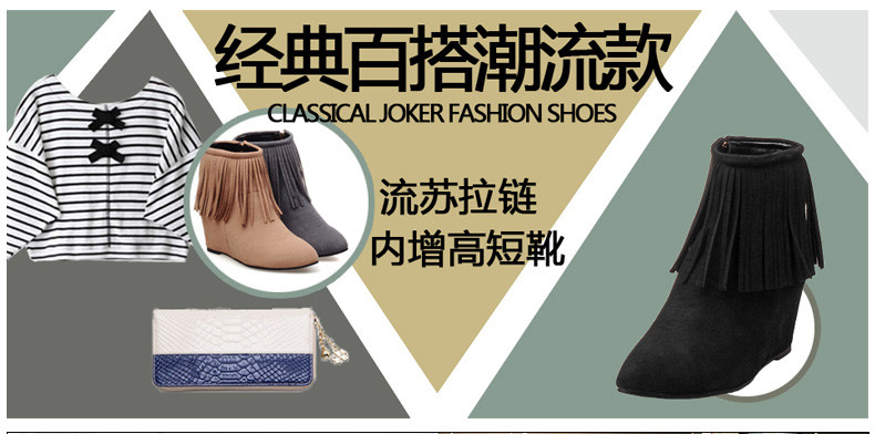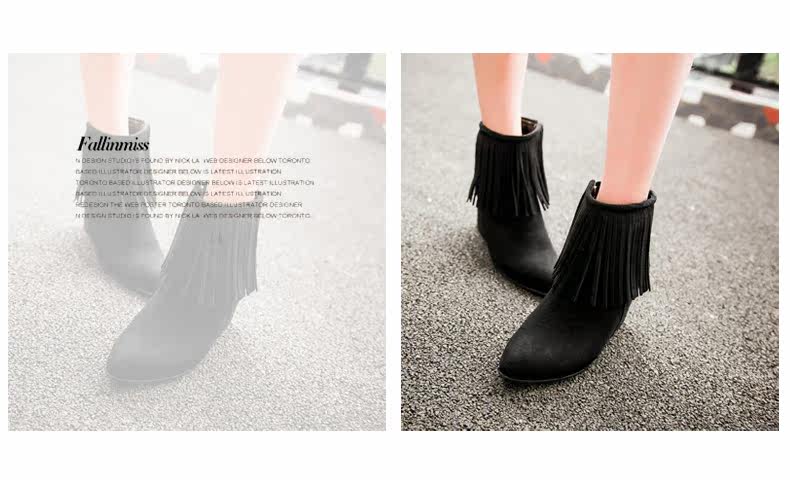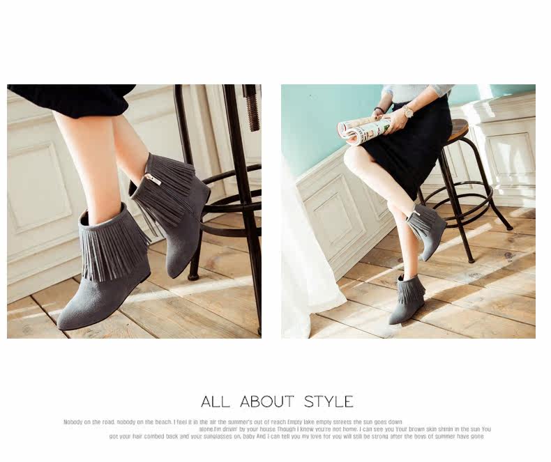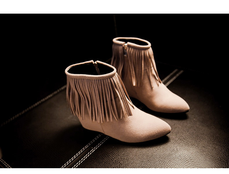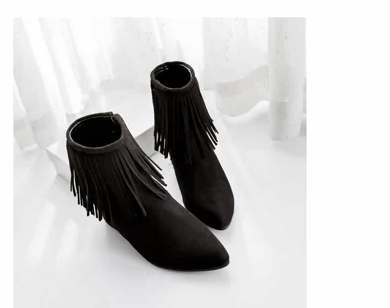 新品流苏靴高跟女鞋坡跟短靴女裸靴流苏短靴内增高大码流苏鞋