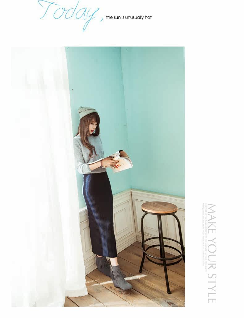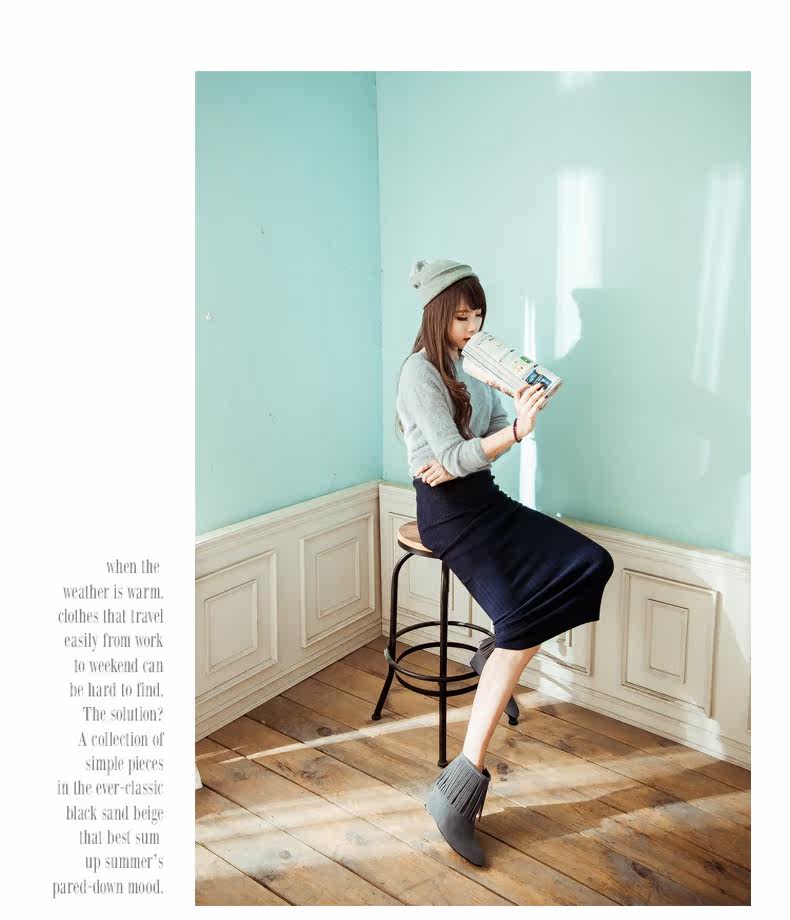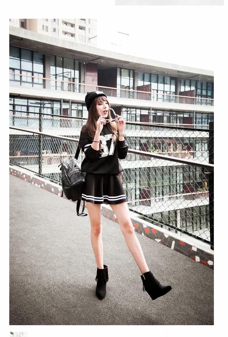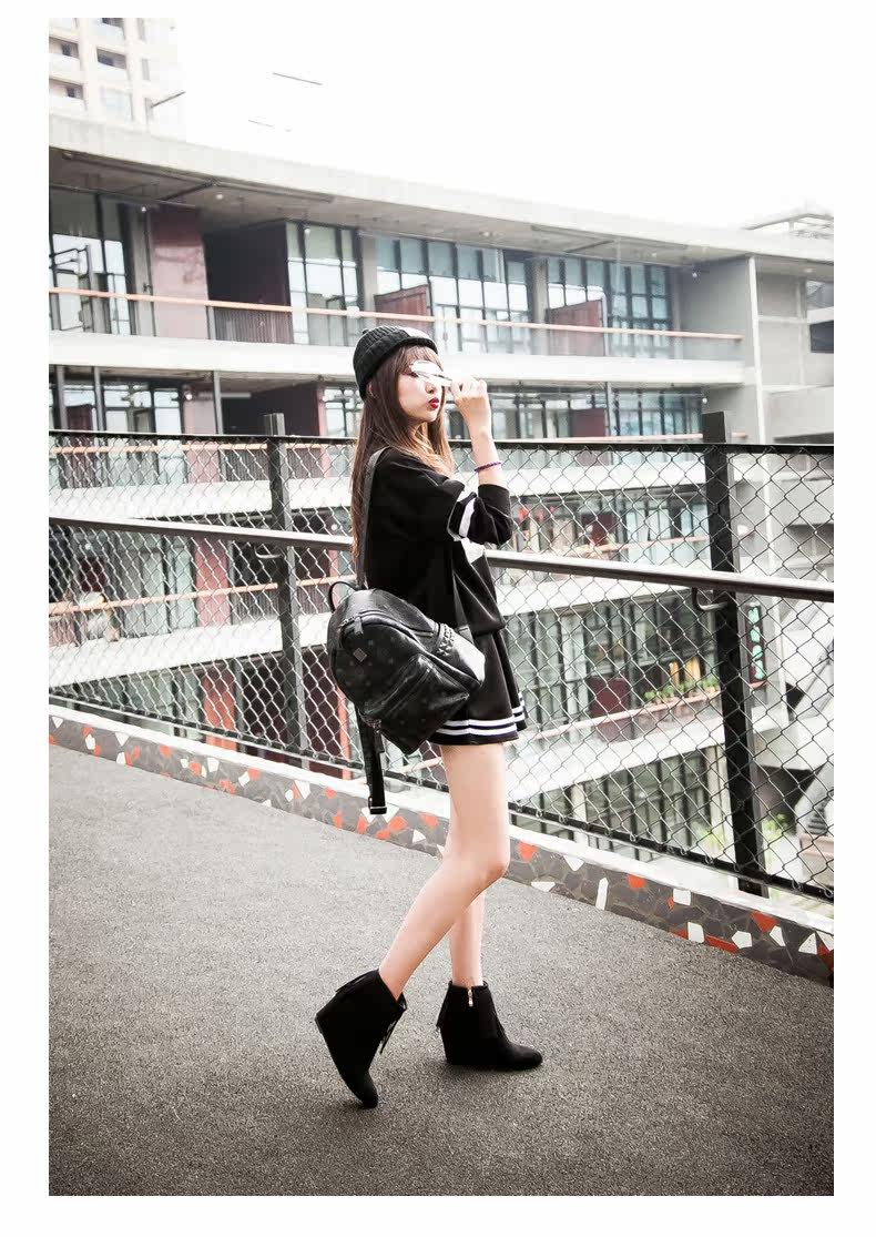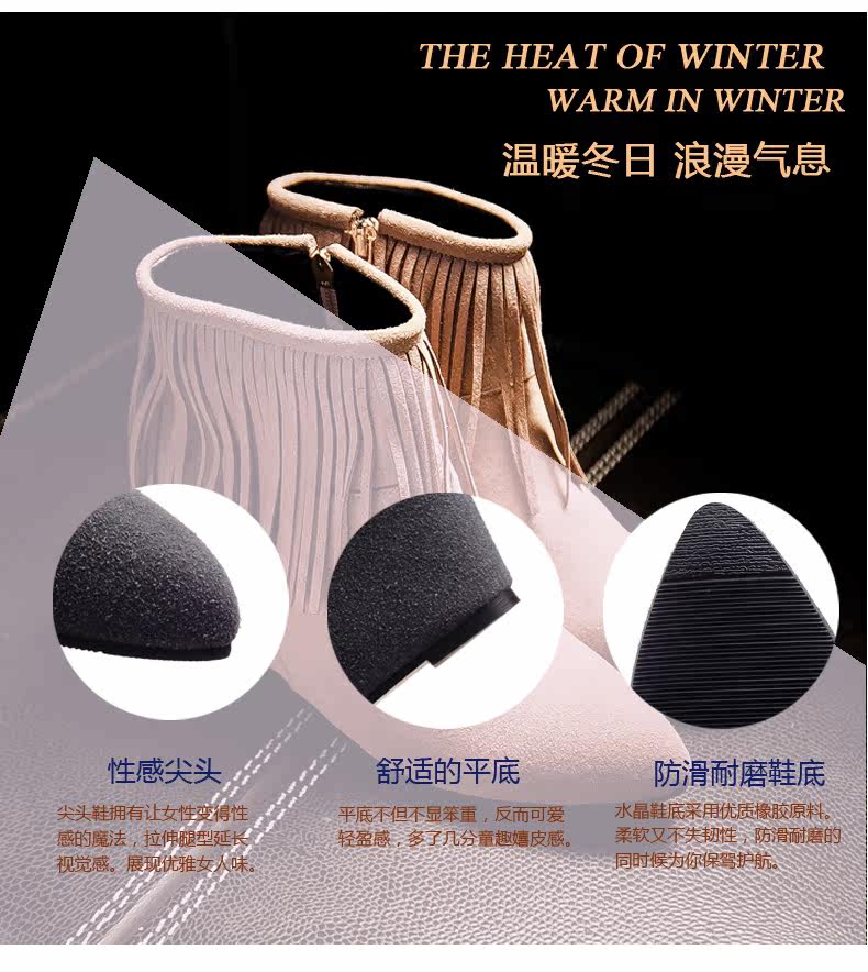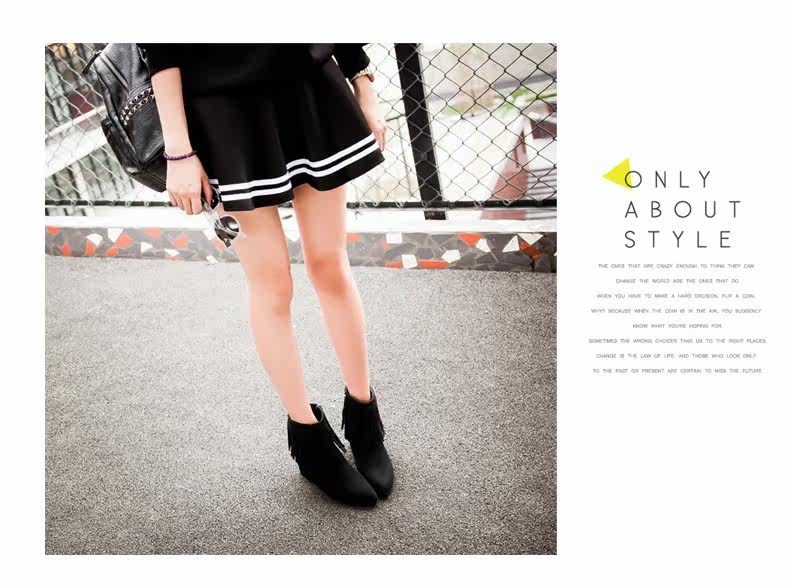 新品流苏靴高跟女鞋坡跟短靴女裸靴流苏短靴内增高大码流苏鞋