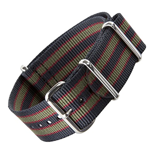 -. Title : Vintage Bond Nylon NATO Uhrenarmband bei Geckota®, poliert, Dunkelblau / Rot / Grün gestreift, 22mm