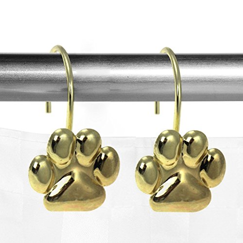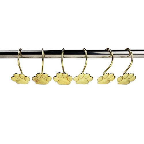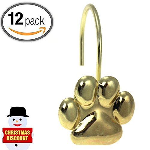 Gold Bear Palm Print Shape - Shower Curtain Hooks, Polished Chrome,Includes a Set of 12 - Use for Bathroom Shower Rod/ Bedroom/ Living Room