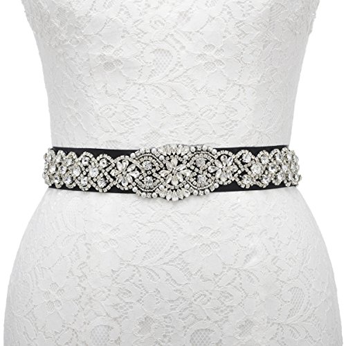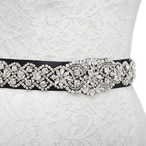 Remedios Sparkling Rhinestone Satin Ribbon Sash Belt for Bride Bridesmaid Women,Black