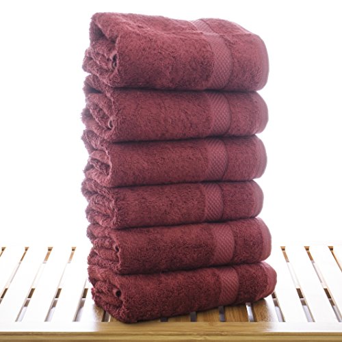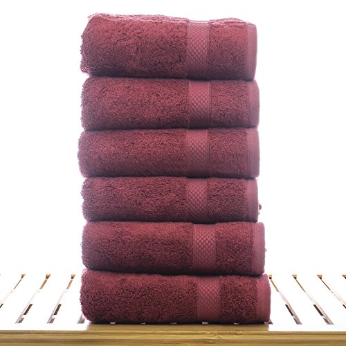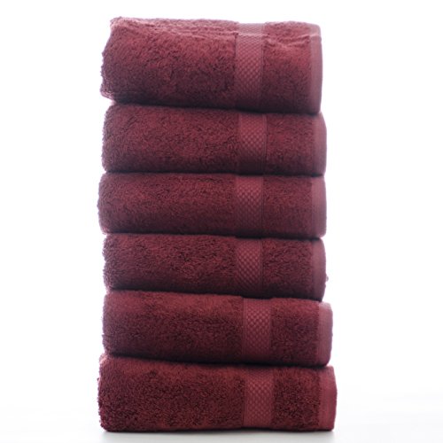 Luxury Hotel & Spa Towel 100% Genuine Turkish Cotton Bamboo (Cranberry, Hand Towel - Set of 6)