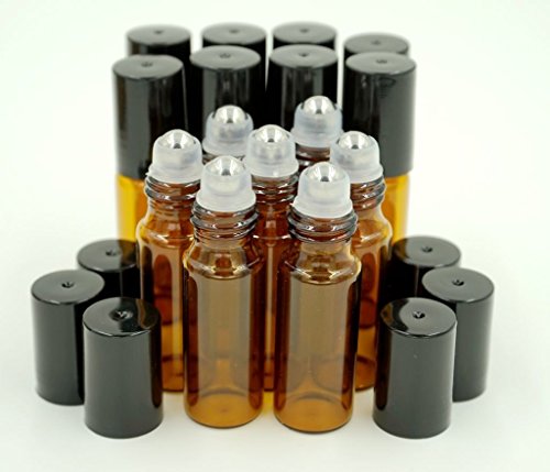 TOPWEL 24pcs 3 Ml Refillable Amber Glass Roller Bottles with Balls and Black Caps (24)