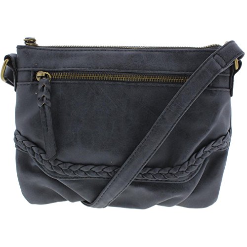 Style & Co. Womens Freestyle Faux Leather Braided Satchel Handbag Navy Small