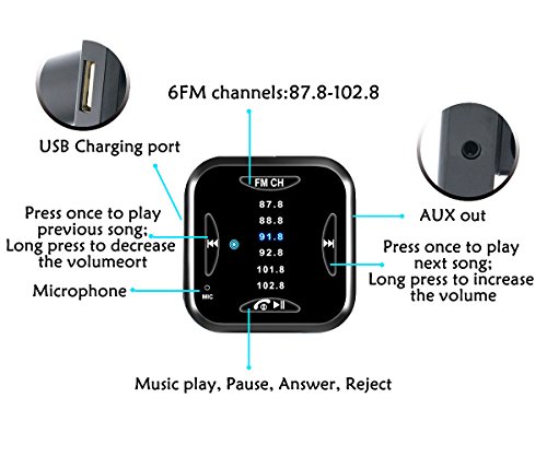 Broad Compatibility: Suitable for all types of vehicles. Support various models of mobile phone charging and Aux audio output, advanced tuner for reduced FM interference/static.