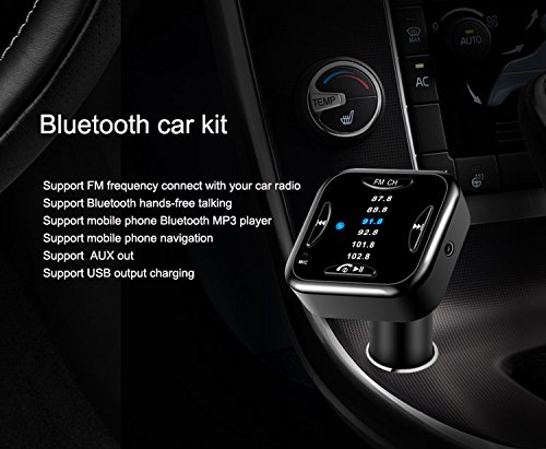 YIVAN Bluetooth Car Kit, Receiver,FM Transmitter-Support Bluetooth hands-free talking, MP3 player, Navigation, AUX Out, USB Charger- With 3.5mm audio cable,6 FM channels,Black