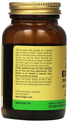 Solgar Acai Extract Softgels, Brazilian Berry, 60 Count