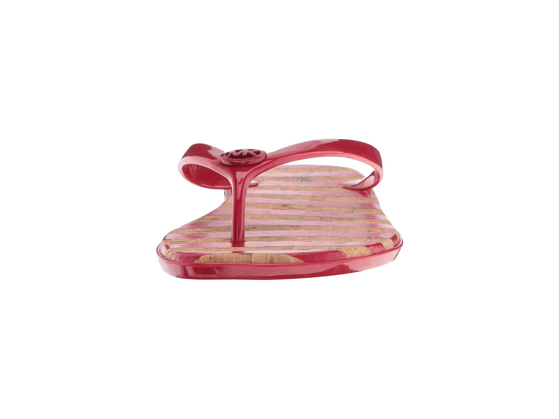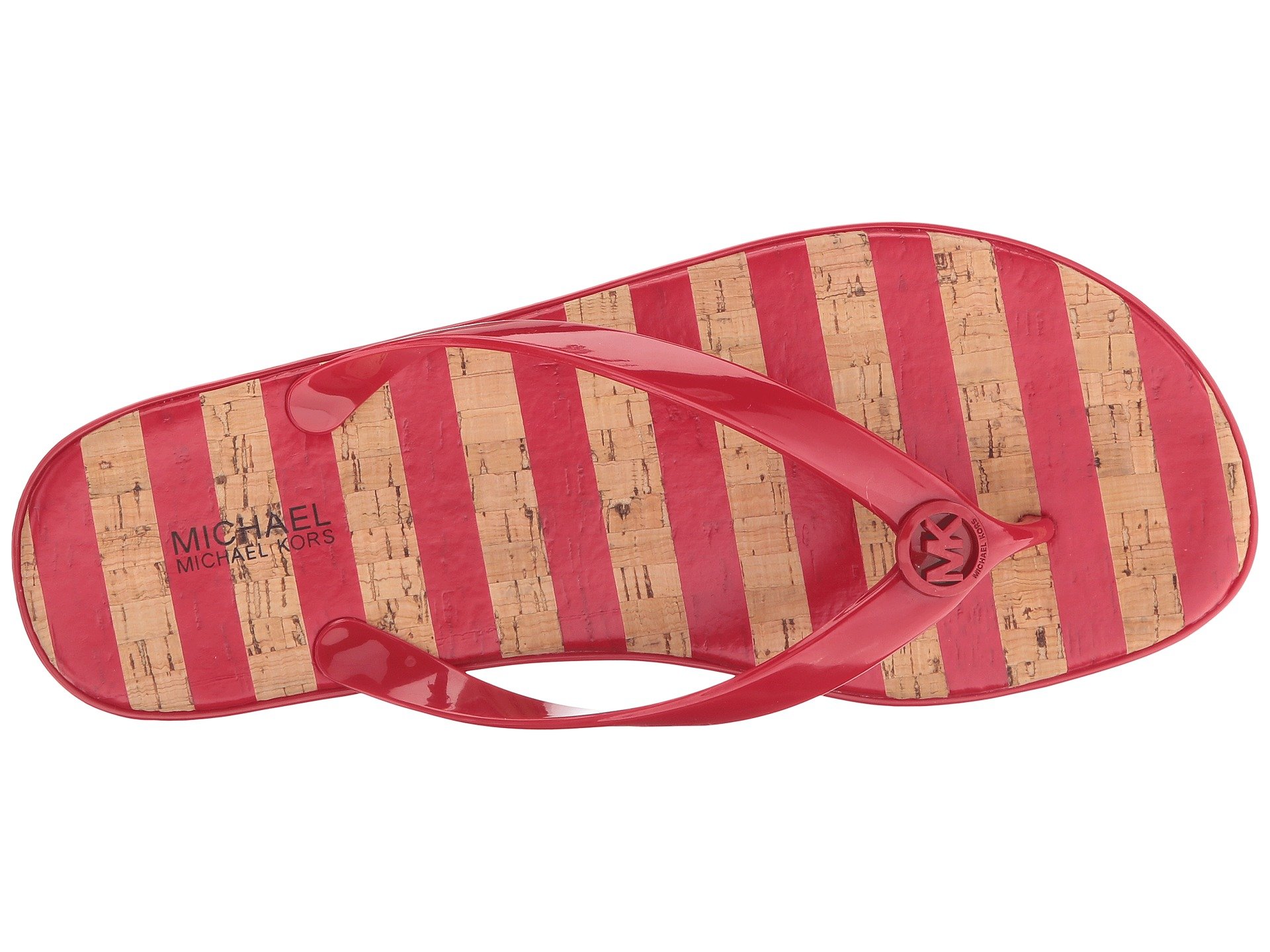 | Product Information SKU: #8064642The perfect summer sandal!PVC upper.Thong post.Polished MK logo hardware.Man-made lining.Cork footbed.Rubber outsole.Imported.Product measurements were taken using size 9, width M. Please note that measurements may vary by size.Weight of footwear is based on a single item, not a pair.Measurements: Heel Height: 1?4 in Weight: 6 oz |