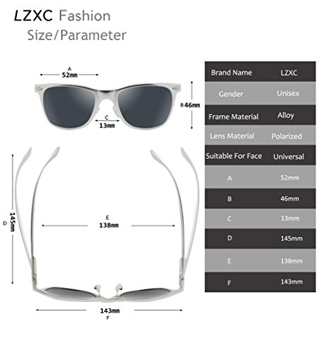 LZXC Wayfarer Style Fashion Polarized Driving Sunglasses Silver AL-MG Frame Unisex Men Women UV400 Black Lens