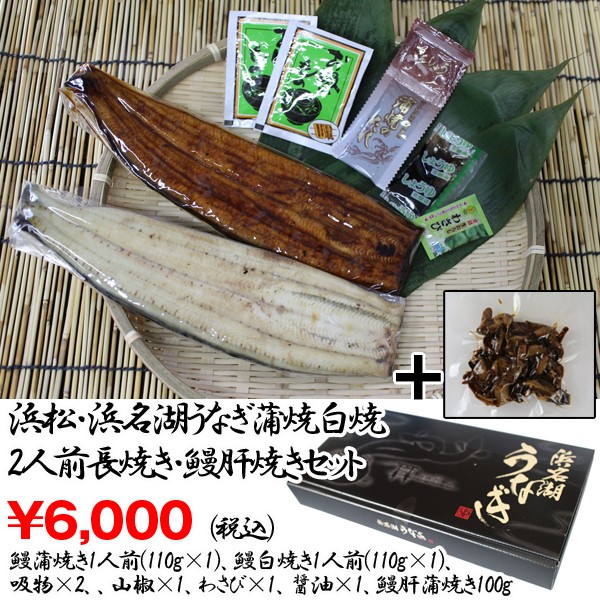 ■内容量:鰻蒲焼き1人前(110g×1)、鰻白焼き1人前(110g×1)、吸物×2、、山椒×1、わさび×1、醤油×1、鰻肝蒲焼き100g