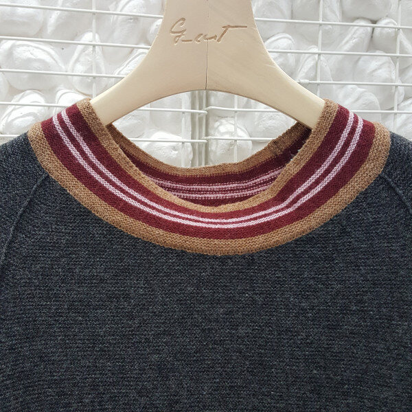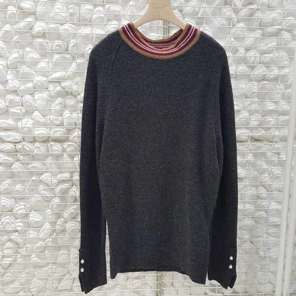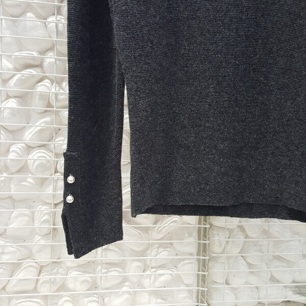 지컷 소매진주장식 라운드 니트티셔츠