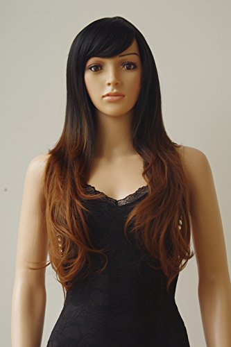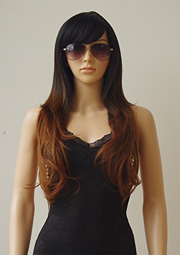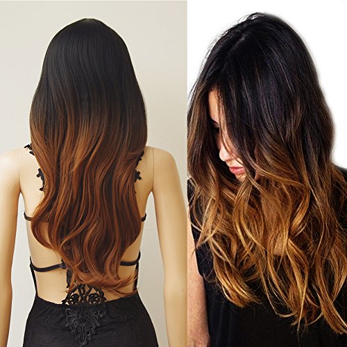 28'' / 70cm Long Full Wig with Bangs Brown Ombre 2 Tone Color Japanese Kanekalon Fiber Natural Wave Heat Resistant Synthetic Wig Dyeing Color Curly Wavy...