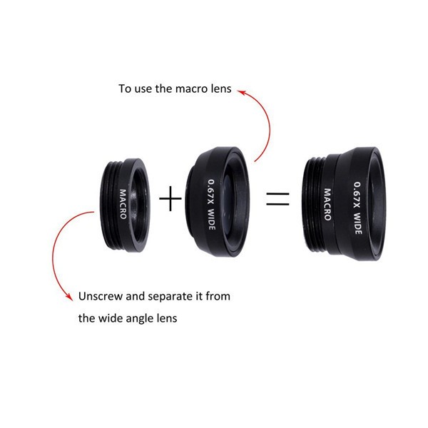 2. When you want to use Macro Lens, you need unscrew it to splite Macro lens. If you want use wide lens again, just screw the 2 items together.