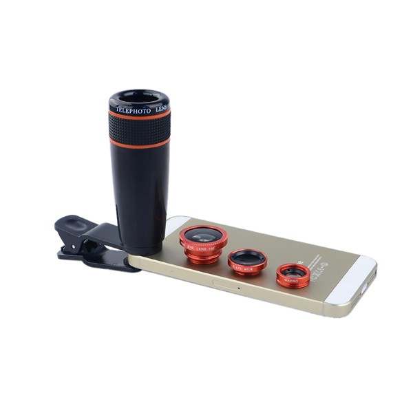 5in1 12X Zoom Camera Telephoto Lens Phone Telescope 3in1 Clip on Lens Kit Wide Angle Fish Eye Macro for IPhone Samsung JT55