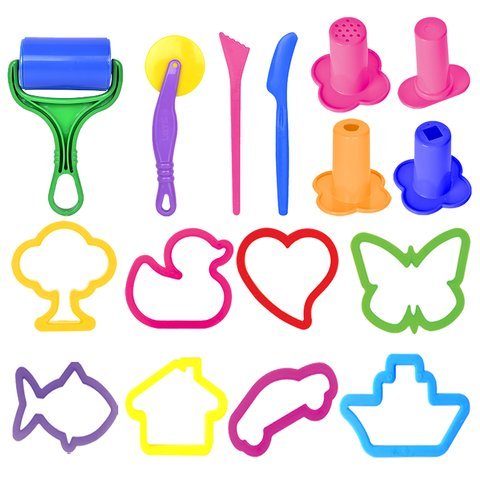 Let's Have Fun Dough Tools Set, 15pieces, 8 Fun Molds, 3 Dough Extruders, 2 Spatulas, 1 Roller and 1 Cutter Inspire your child to use their hands!