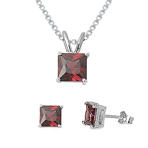 -. Title : Sterling Silver Simulated Garnet Necklace & Earrings Set
