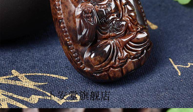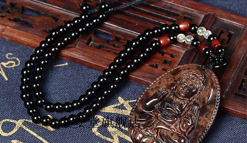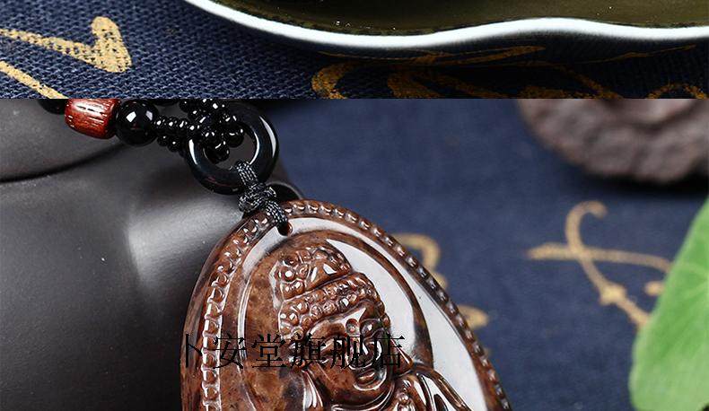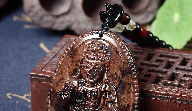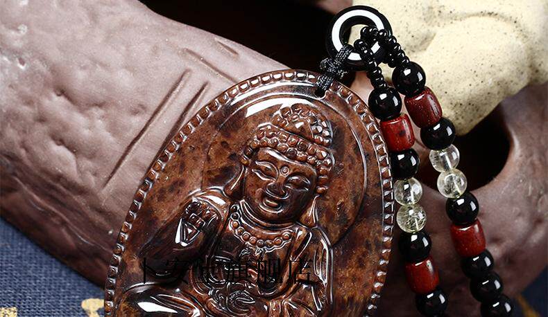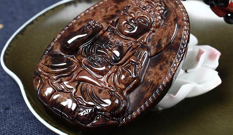开光天然红竹石影子石金丝红曜石生肖属狗属猪本命佛阿弥陀佛吊坠